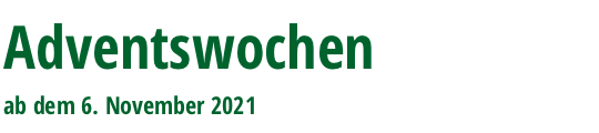 Auch wir müssen die aktuelle Pandemie berücksichtigen und können die Adventsausstellung in der früheren Form nicht durchführen. Ihrer Gesundheit zuliebe haben Sie die Möglichkeit unsere Adventsartikel über einen längeren Zeitraum hin zu erwerben: